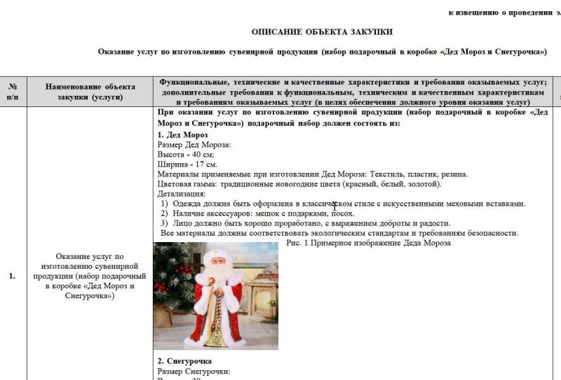 А что цена каждого набора по пять тысяч рублей – так это ж в подарочной коробке и новогодним поздравлением от заказчика! Особо оговорено, что лицо Деда Мороза должно иметь выражение «доброты и радости» (ну прямо как у спикера Ведерникова), а лицо Снегурочки – выражение «нежности и радости» (ну прямо как у вице-спикера Натальи Дикусаровой).