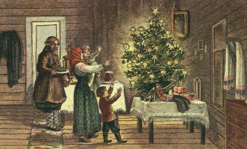 Постепенно ель — дерево, не теряющее зимой своей красоты — повсюду стала непременным атрибутом рождественского периода. В России обычай ставить новогоднее хвойное дерево зародился благодаря указу Петра I, перенесшего встречу Нового года с 1 сентября на 1 января и повелевшего «по большим улицам, у нарочитых домов, пред воротами поставить некоторые украшения от древ и ветвей сосновых, еловых и мозжевелевых против образцов, каковы сделаны на Гостином Дворе». Но указ этот касался преимущественно столицы, и до провинции, тем более деревень, «докатился» ещё нескоро. Наряжать рождественские ёлки дома стали только к концу XIX века.