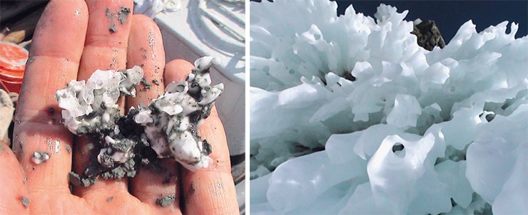 Кристаллы газовых гидратов состоят из молекул газа, впаянных в каркас из молекул воды. Фото О. Хлыстова