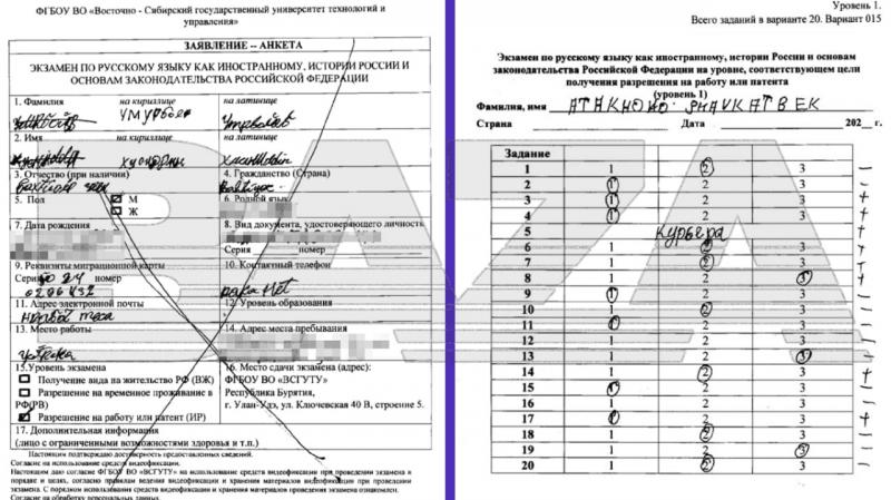 Полиция начала проверку Восточно-Сибирского госуниверситета в Бурятии — учебное заведение подозревают в выдаче фиктивных сертификатов о знании русского языка иностранцам. На фото результаты их тестов.<…>