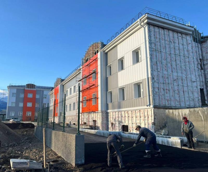 Сейчас подрядчик занят утеплением фасада, монтажом витражных конструкций, внутренней отделкой помещений, электромонтажными работами, а также благоустройством прилегающей территории. На объекте трудятся 78 строителей.
