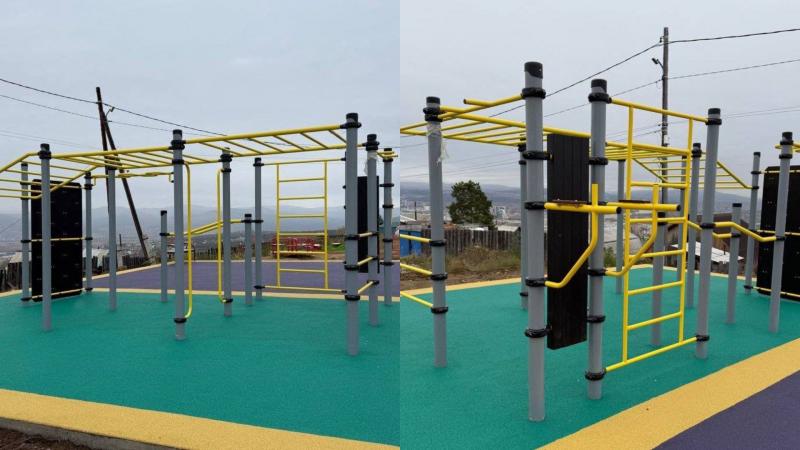 Новые турники гармонично сочетаются с немного накренившимся столбом электропередач