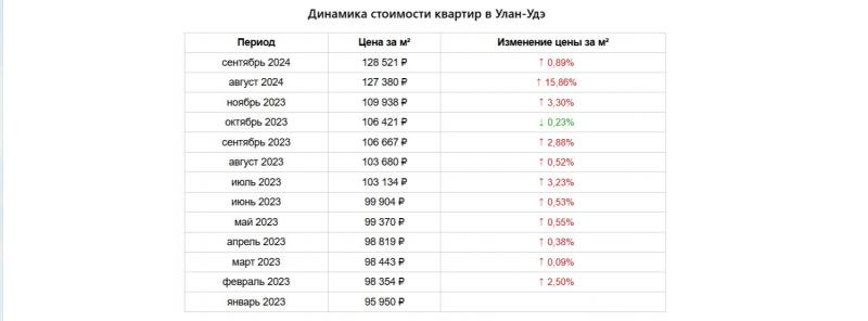 Массовый и платежёспособный спрос, искусственно созданный государством, столкнулся с ограниченным количеством новостроек в Улан-Удэ. Программа не распространялась на вторичку. Застройщики — не дураки, они начали поднимать цены. За ними естественно потянулся и вторичный рынок. Если в конце 2022 года «квадрат» на вторичном рынке стоил около 96 тысяч рублей, то к осени 2024-го — уже более 128 тысяч. Рост почти на треть за полтора года.