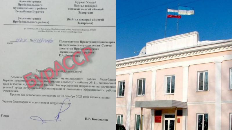 24 октября глава Прибайкальского района Бурятии Николай Коновалов уведомил председателя райсовета Евгения Родионова, что он должен освободить кабинет № 11 в здании администрации до 30 октября. «Улучшение условий труда сотрудников администрации и повышение эффективности работы учреждения», — указанная в письме причина, по которой спикера выселили с рабочего места.