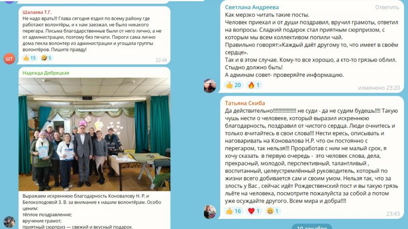 Люди обиделись, в местных чатах пошло бурление. И Коновалов, судя по всему, решил использовать бюджетников как ботов, чтобы подавить недовольство. В комментариях к посту внезапно и хором стали появляться комментарии в защиту «вкусного пирога» и «щедрого главы». Первой в атаку пошла Тамара Шалаева, заведующая Итанцинским детским садом «Берёзка». Она агрессивно потребовала «не врать», утверждая, что пироги вообще-то домашние.