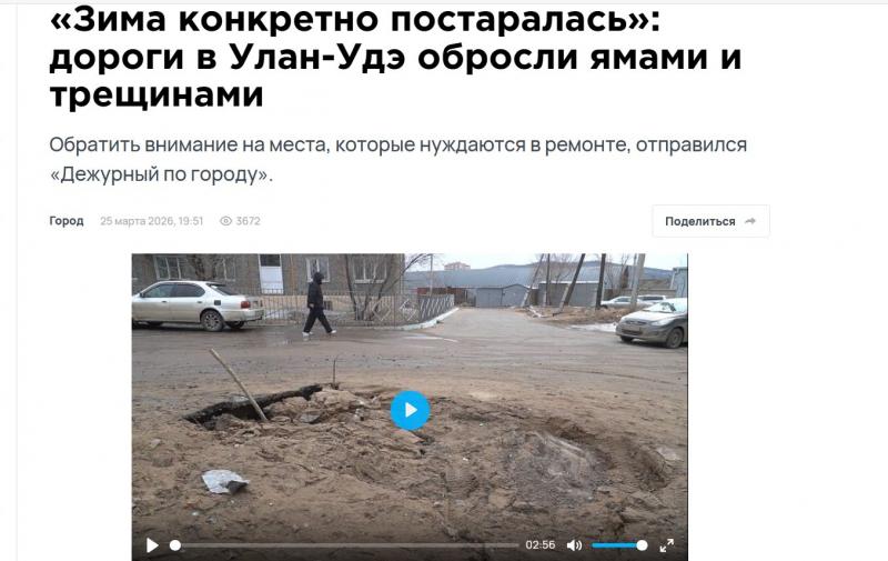 Нам пишут. Улан-Удэнское бездорожье