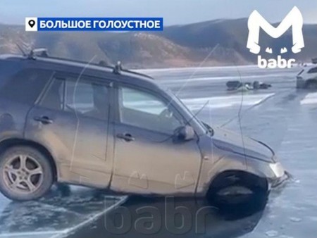 В районе села Большое Голоустное на Байкале провалились сразу две машины. Об этом сообщает телеграм-канал Babr Mash. Водители нескольких машин решили покататься по льду Байкала, несмотря на запрет. Один автомобилист успел проехать, второй провалился, «встав» бампером на кромку льда.