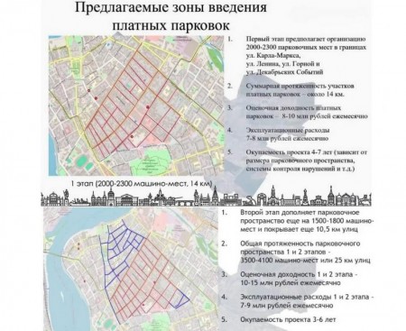 В центре Иркутска в два этапа будут вводить платные парковки. Всего — около 4000 мест, сообщает пресс-служба мэрии города. Данные по этапам обсудили с депутатами городской думы. Красным на планах выделены улицы, где платные парковки появятся на первом этапе, синим — на втором.