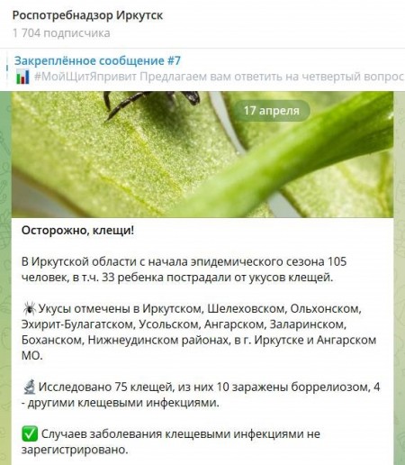 Интересная бухгалтерия выходит с клещами у управления Роспотребнадзора по Иркутской области. Берем данные с его сайта и скриншоты с Телеграм-канала.