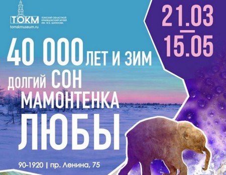 В Томском областном краеведческом музее (проспект Ленина, 75) с 21 марта по 15 мая будет работать выставка «40 000 лет и зим. Долгий сон мамонтенка Любы». Главный экспонат выставки – детеныш шерстистого мамонта, найденный в 2007 году в ямальской тундре.