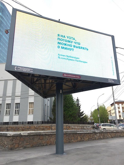 21 мая, Иркутск. Yota запустила второй этап рекламной кампании #наyota, в котором высказывания клиентов стали новой рекламой оператора на ТВ, на радио, в интернете и на городских щитах. Часть носителей ведет на реальные посты клиентов в социальных сетях. Ролики для радио и ТВ озвучили клиенты - авторы сообщений.