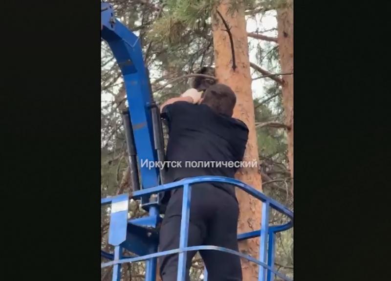 Мэр Чунского округа Николай Хрычов снимал с дерева кота
