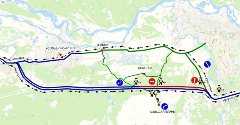 Перекрыт будет 11-километровый отрезок с 1798 по 1809 километры. В этот день там пройдёт велогонка. Транспорт будет перенаправлен по старой трассе через Усолье.