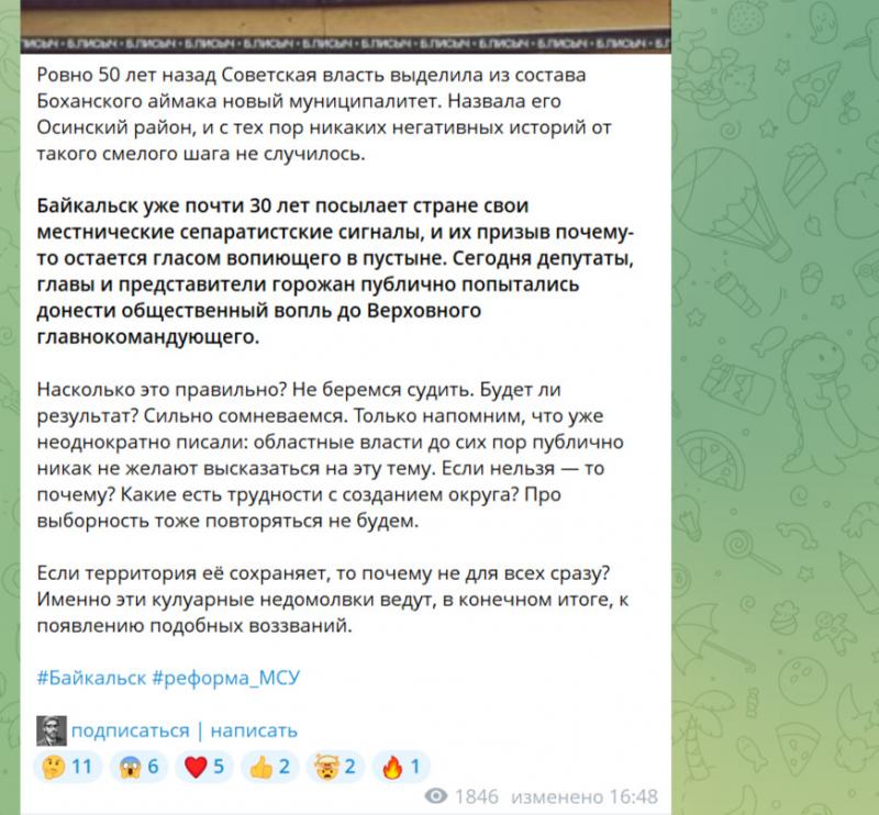 Жители уверены: апелляция к федеральному центру может стать для Нижнеудинска и Байкальска тем самым «смутным шансом» по противодействию областному закону. Бесспорно, данное обращение – это уже качественно новый уровень конфликта. Он переводит его из плоскости локальных склок в ранг проблемы федерального значения, способной создать Иркутской области репутационные издержки на самом высоком уровне. И искусственное замалчивание вопроса, о котором говорят, например, коллеги – здесь уже не поможет.