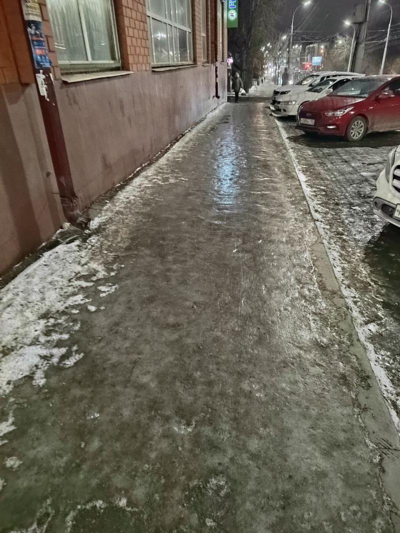«Здравствуйте. Уберите, пожалуйста, снег и гололед с тротуара на улице Ленина в районе остановки «Стадион «Труд» и школы №15. Какое-то время было нормально. Несколько дней назад были интенсивные осадки. С тех пор не убирали снег и наледь на этом месте, в результате там все утоптано до зеркальной глади! При мне несколько человек поскользнулись. Ведь это же остановка общественного транспорта, рядом школа, очень много людей ходит каждый день! За несколько дней с последних снегопадов не нашлось времени убрать? Когда проведёте очистку этого участка?».