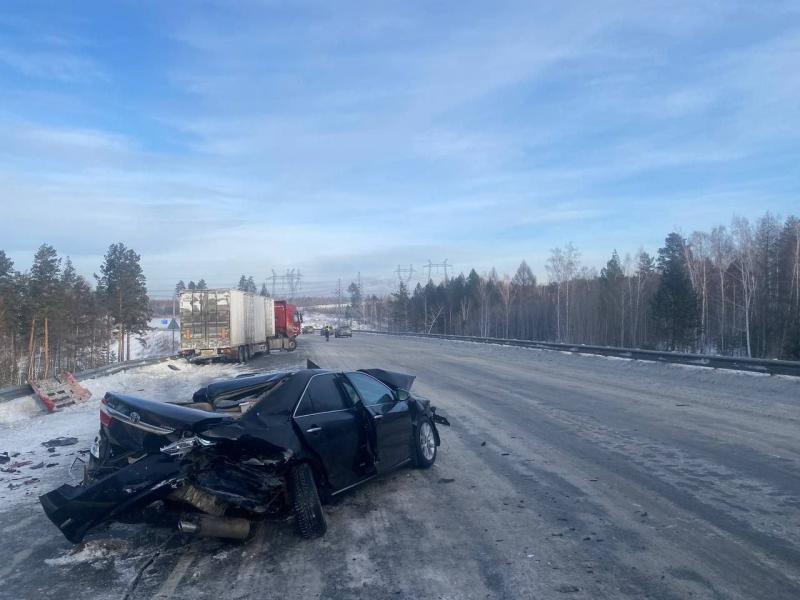 Авария произошла около 13:30. 45-летний водитель большегруза ехал в сторону Иркутска, не справился с управлением, выехал на встречную полосу и сбил Toyota Camry. Травмы получили 33-летний водитель легковушки и его пассажиры: 36-летняя женщина и четырёхлетний ребёнок. Ребёнок в момент ДТП находился в детском автокресле.