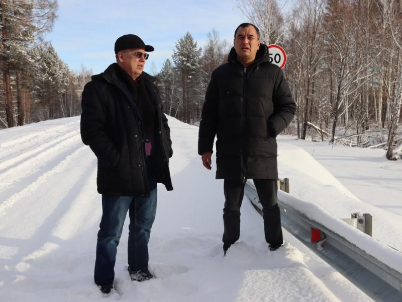 Мэр Черемховского района Сергей Марач и депутат Госдумы Сергей Тен, как те норовистые кони, забрались в снега где-то в необъятной Иркутской области. Мужчины они, конечно, закаленные, поскольку первый не мерзнет в кепке, второй вообще обозревает территорию с непокрытой головой.