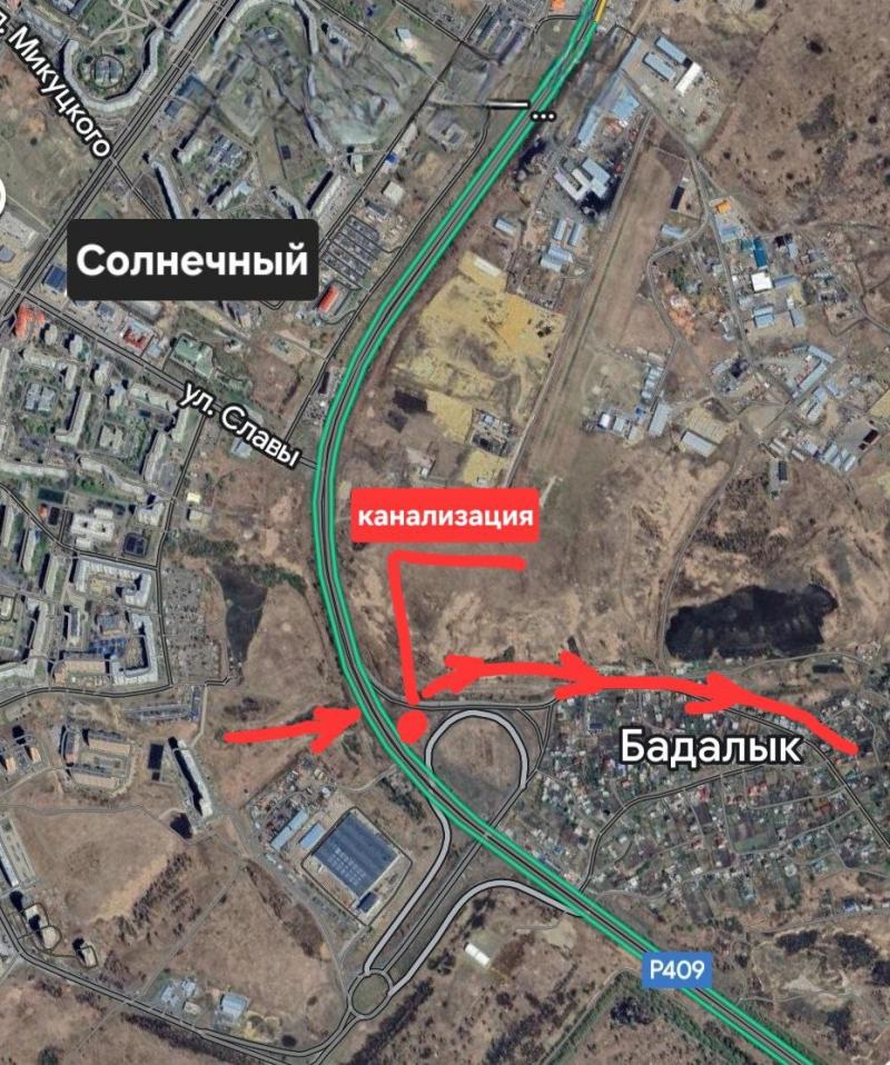 Тем временем общественные инспекторы выяснили, что источник запаха может быть вовсе не промышленным, а коммунальным. Недавно они обследовали территорию между Солнечным и Бадалыком. Запах там особенно сильный, а рядом проходит ручей, в который стекает мутная жидкость с характерным «канализационным» ароматом. После обхода экологи нашли коллекторный узел — место, где сходятся несколько подземных труб. Есть подозрение, что одна из них треснула. Нечистоты, уходящие из Солнечного, просачиваются в водосточную трубу и по ручью попадают в Бадалык.