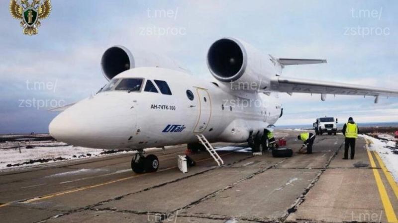 АН-74 повредил колесо шасси после приземления в аэропорту на севере Красноярского края.