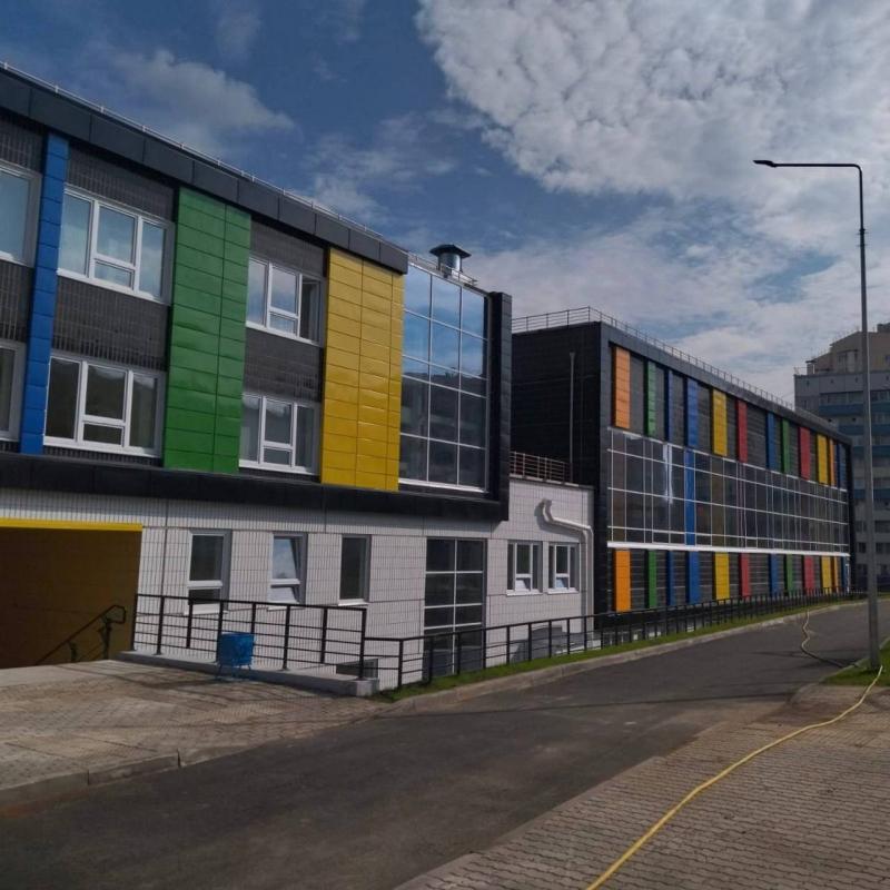 Из-за сложного рельефа участка проект пришлось изменить: вместо стандартного здания на 1280 мест построили школу на 1100 учеников. Учебное заведение рассчитано на 44 класса, которые смогут заниматься в одну смену.