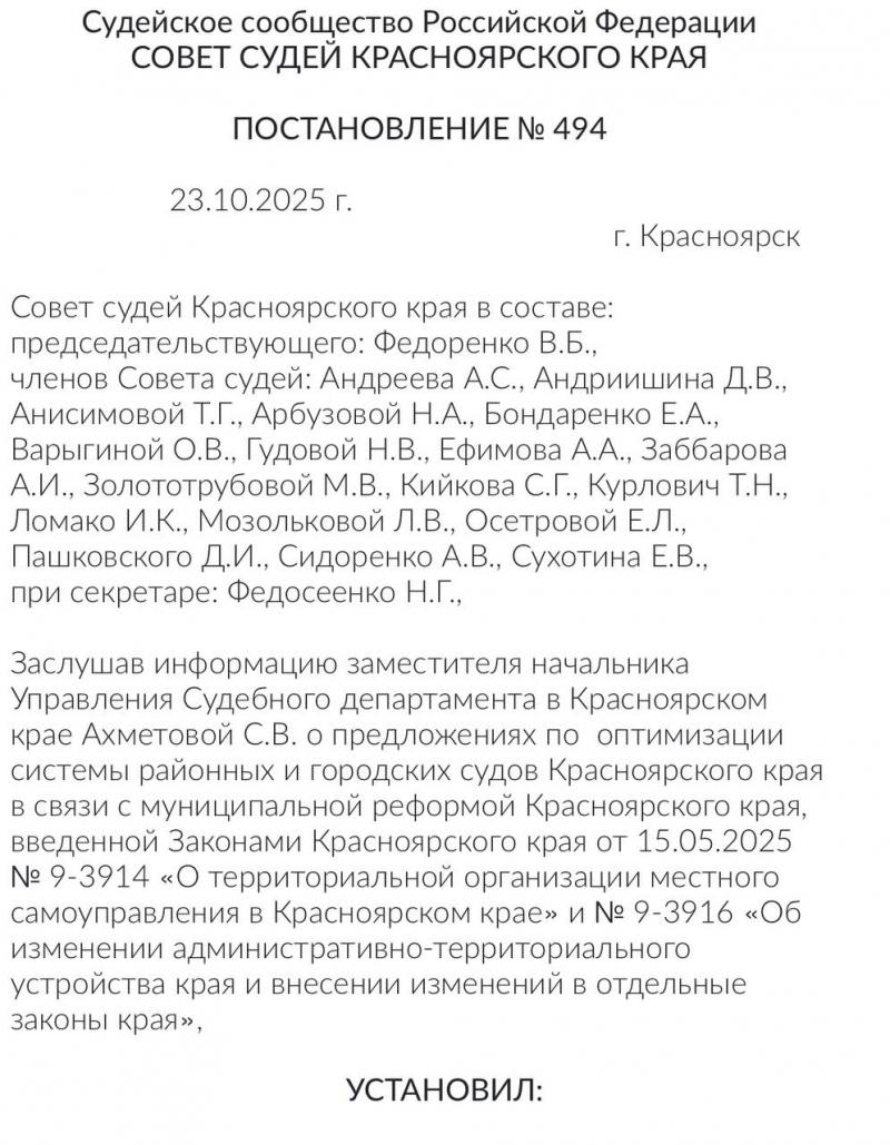 Там в связи с муниципальной реформой, которая была так нужна местным жителям, так долгожданна, зреет оптимизация системы районных и городских судов региона. Именно это следует из постановления краевого Совета судей.