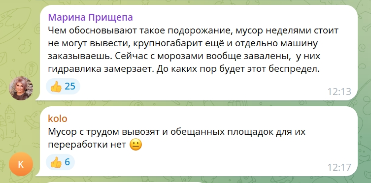 В комментариях под новостями люди пишут без обиняков. Кто-то называет происходящее беспределом, кто-то прямо задает вопрос, за что именно они должны платить больше. Звучат и более жесткие формулировки, которые сложно не понять, когда во дворе стоят горы отходов, а счета в почтовом ящике только растут.