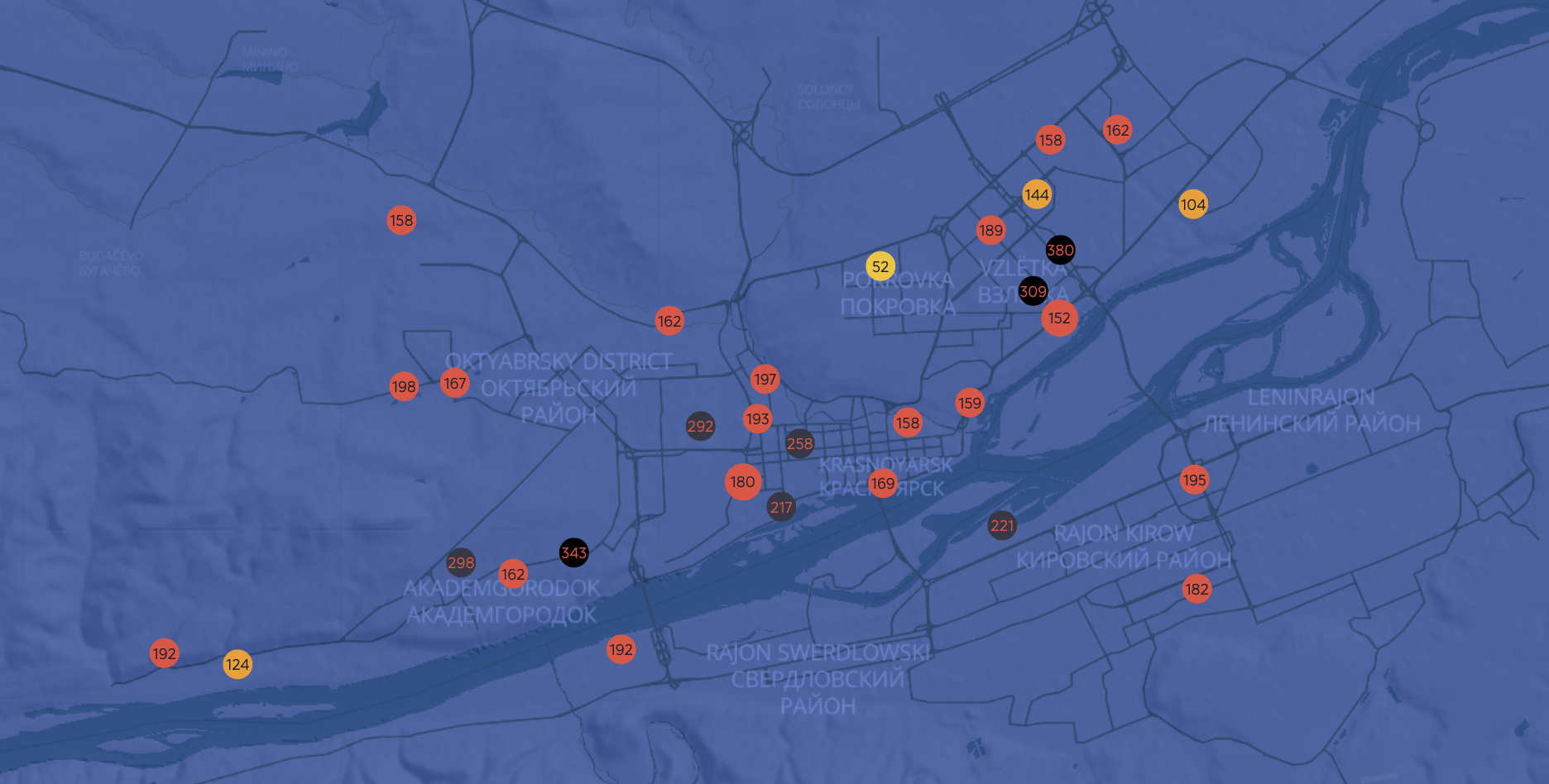 Жители Красноярска сообщают о смоге над городом. Датчики проекта nebo.live показывают сильное загрязнение воздуха почти во всех районах Красноярска.
