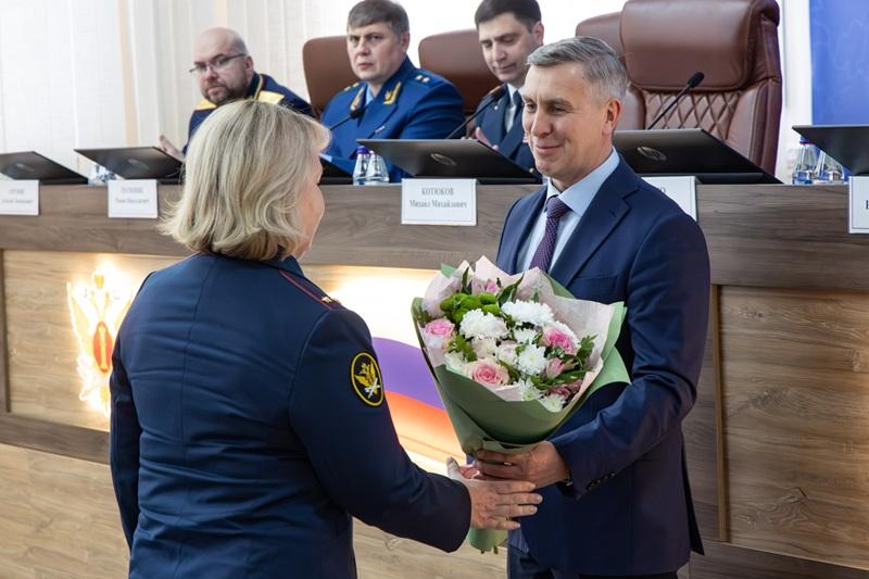 Затем губернатор совместно с председателем Законодательного собрания Алексеем Додатко вручили наиболее отличившимся сотрудникам награды. Председатель регионального парламента также отметился комплиментарной речью в адрес ведомства, обеспечивающего исполнение наказаний, связанных с изоляцией от общества.
