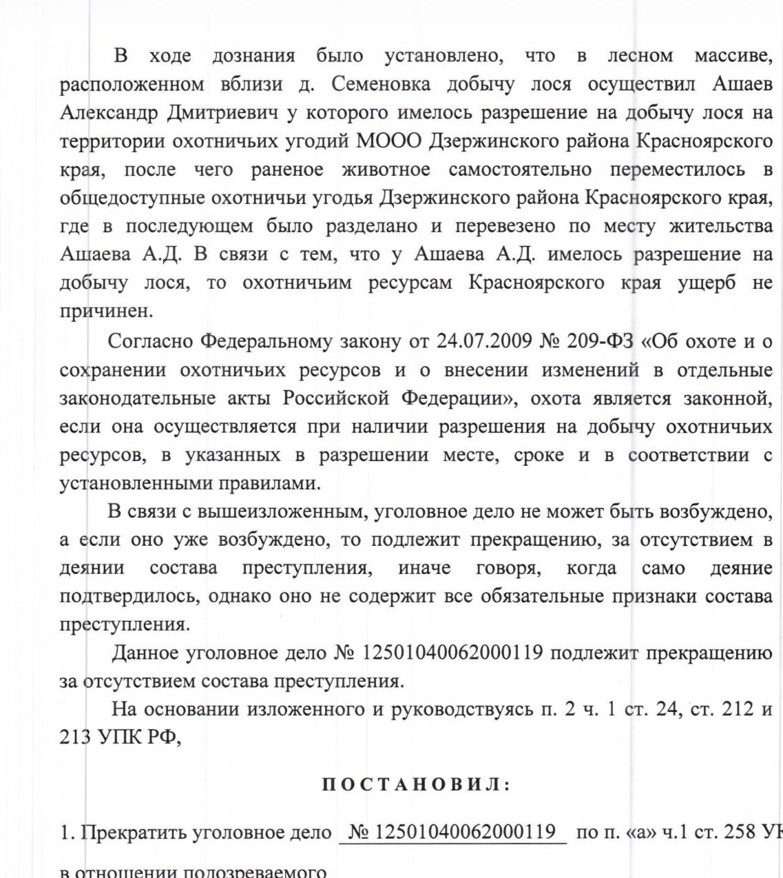 А вообще, если читать это постановление, то получится увлекательный рассказ о том, как охотится сын единоросса Ашаева — председателя совета депутатов Дзержинско-Тасеевского муниципального округа. Не Рашкин, конечно, но джипы и лоси присутствуют.