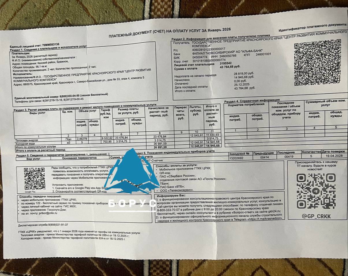 В 2026 году собственникам квартир приходят счета от 14 до 40 тысяч рублей. Например, один из жителей должен за январь почти 15 тысяч за квартиру в 56 квадратов, другому начислили 38 тысяч.