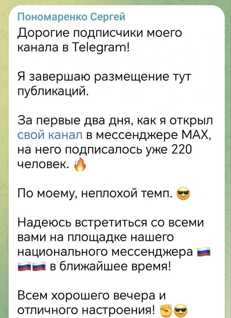 Отдельную волну обсуждений вызвало завершение активности в Telegram со стороны краевого чиновника Сергея Пономаренко. Телеграм-сообщество рассуждает, станет ли этот шаг личной инициативой или началом более широкой тенденции.