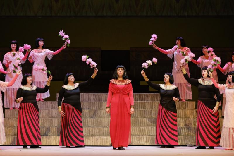 Действие постановки разворачивается в царском дворце в Мемфисе. Верховный жрец сообщает начальнику дворцовой стражи Радамесу весть о нашествии эфиопов. Радамес мечтает возглавить египетские войска и одержать победу. Наградой станет свобода Аиды, рабыни фараона, возлюбленной Радамеса. Его мечты прерывает тайно влюблённая в него принцесса Амнерис. Принцессу мучают ревнивые подозрения: при виде Аиды и Радамеса она догадывается об их чувствах.