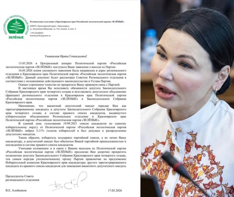 «Ирина Иванова прошла в Законодательное собрание по партийному списку. Люди голосовали за партию, а не за неё лично. Последний год показал, что Ирина не разделяет идеологию и ценности «ЗЕЛЁНЫХ». Мы считаем справедливым передать мандат следующему в партийном списке. Люди голосовали за «ЗЕЛЁНЫХ» и «ЗЕЛЁНЫЕ» должны представлять их экологические интересы», – прокомментировал лидер регионального отделения партии в Красноярском крае Владислав Алейников.