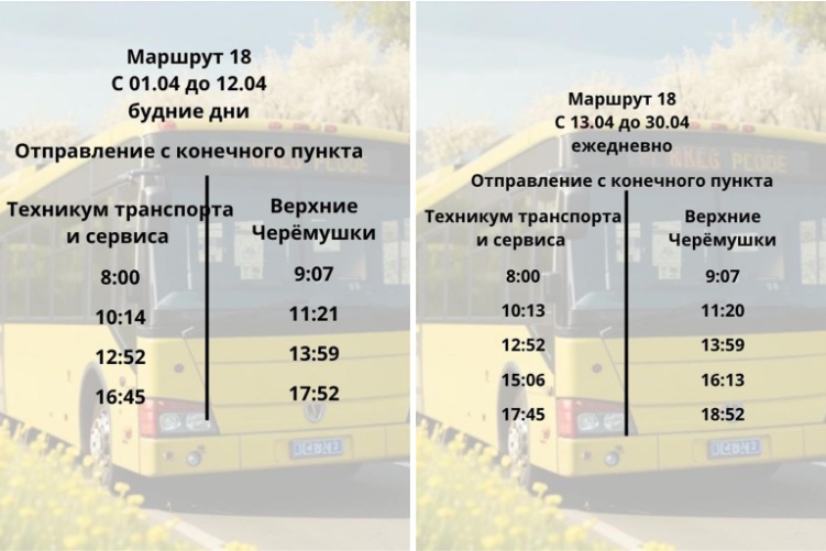 С 1 апреля в Красноярске стартует сезон дачных перевозок. Первыми на линию выйдут автобусы маршрута №18, которые свяжут Техникум транспорта и сервиса с микрорайоном Верхние Черёмушки.