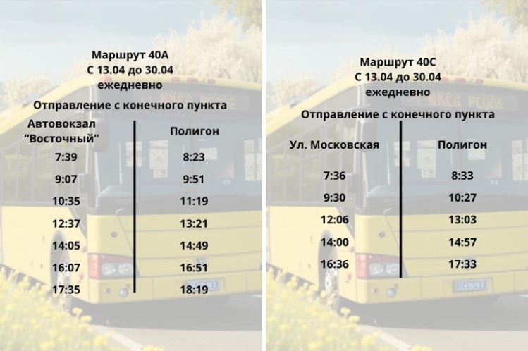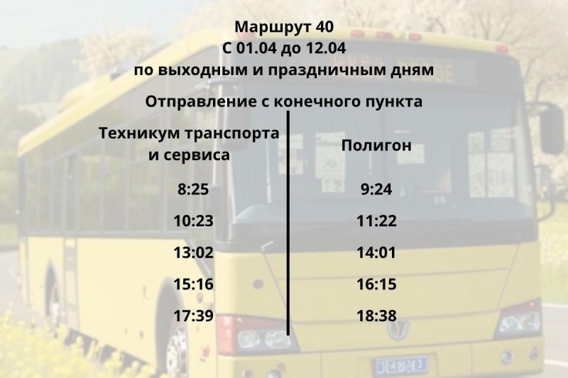 Уже 4 апреля к работе подключится маршрут №40. Он будет курсировать от Техникума транспорта и сервиса до остановки «Полигон». Самый масштабный запуск запланирован на 13 апреля. В этот день начнут работу сразу четыре дачных направления: №18С, №40, №40А и №40С. Тогда же часть рейсов автобуса №19 продлят до садового общества «Южное» — такую практику успешно применяли в прошлом году.