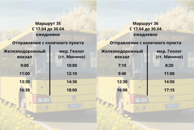 Завершит весеннее обновление транспортной сети 17 апреля запуск двух новых маршрутов — №35 и №36. Они поедут до поселка Геологов у станции Минино.