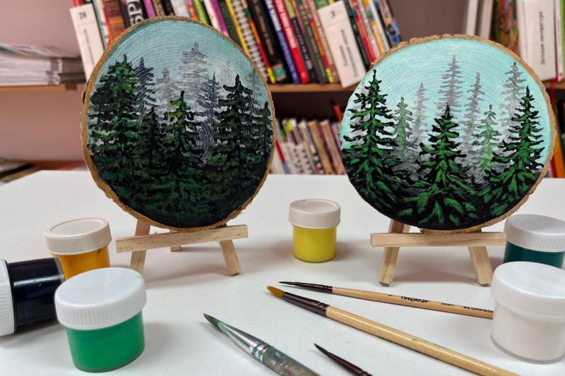 Участники рассмотрят образ тумана в произведениях русских классиков: Тургенева, Салтыкова-Щедрина, Горького, Короленко. Затем с помощью акриловых красок на спилах гости дерева изобразят свой загадочный туманный лес. Посетители самостоятельно создадут эскиз будущей композиции, научатся рисовать на нестандартной поверхности (спиле дерева) и узнают, как работать в технике последовательного нанесения рисунка.