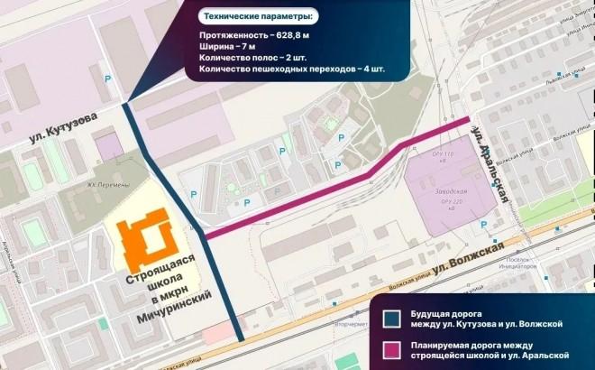 Двухполосная магистраль протяженностью 628,8 метра соединит улицы Волжскую и Кутузова. Как пояснил руководитель департамента градостроительства Александр Навродский, новая артерия обеспечит безопасный подъезд к строящейся школе на 1280 мест и создаст дополнительный выезд из жилого массива.
