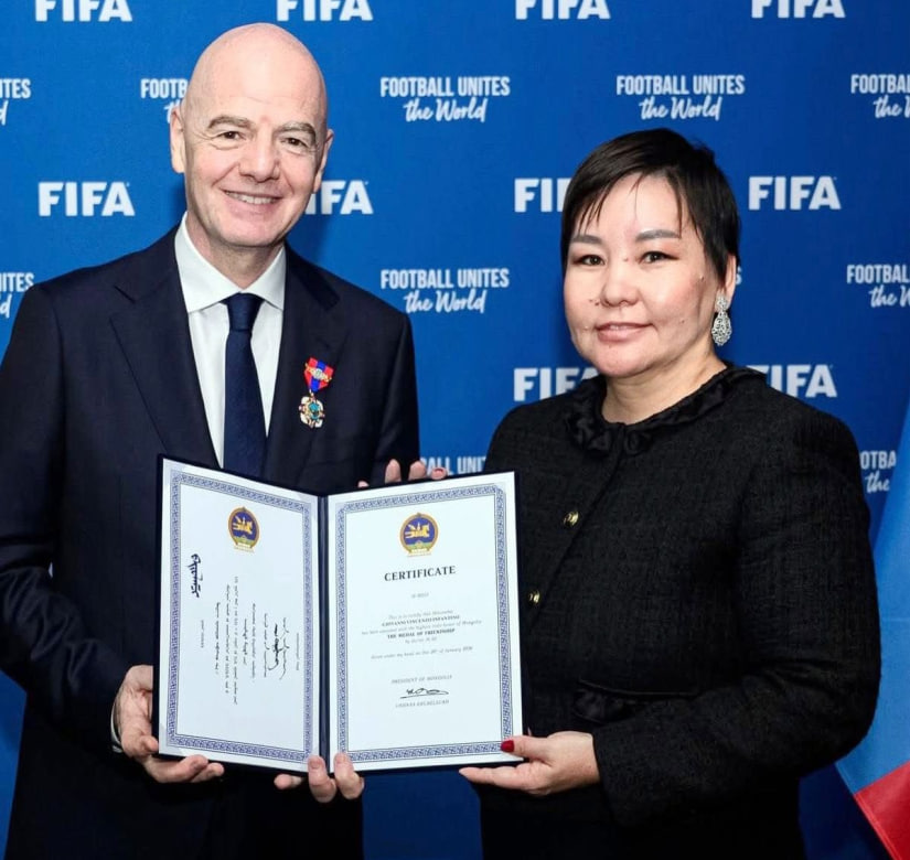 Отмечается, что Инфантино удостоили награды за его вклад в развитие женского футбола в Монголии и укрепление национальной сборной.