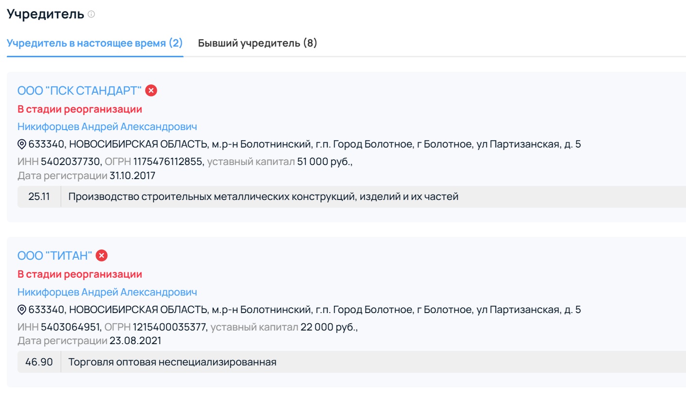 Андрей Никифорцев, очевидно, стал настоящим «похоронщиком» юридических лиц. Он создавал и ликвидировал череду компаний, получавших госзаказы (включая «Торгресурс», «Стройресурс», «Димакс»), а его новые структуры уже проходят стадию реорганизации. Это похоже не на случайность, а на отлаженную модель ухода от последствий после освоения бюджетных средств.
