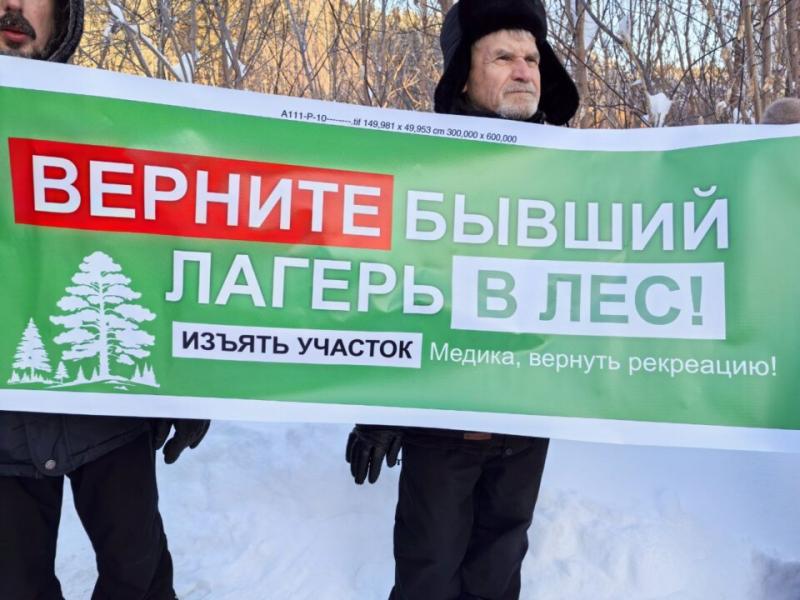 Большая часть присутствующих протестовала против застройки территории бывшего лагеря «Юный медик», которую несколько раз перепродавали. Жители микрорайона не хотели вырубки лесной зоны ради строительства зданий в 15 этажей.