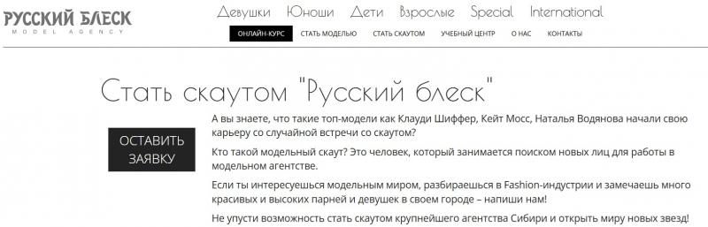 Скриншот с официального сайта агентства «Русский блеск».
