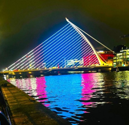 По случаю празднования 114-й годовщины восстановления национальной независимости Монголии знаменитый мост Сэмюэла Беккета в Дублине (Ирландия) 29 декабря подсветили в цветах монгольского флага. Об этом сообщает ИА «Монцамэ».