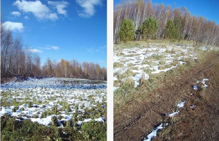 Один из участков площадью 17,48 гектара зарос сорняками различного видового состава, в том числе осотом полевым и одуванчиком обыкновенным, его территория частично захламлена порубочными остатками – ветками и древесной порослью. Второй участок площадью 50,98 гектара зарос осотом, одуванчиком высотой более 0,8 метра и деревьями разных пород высотой более трех метров.