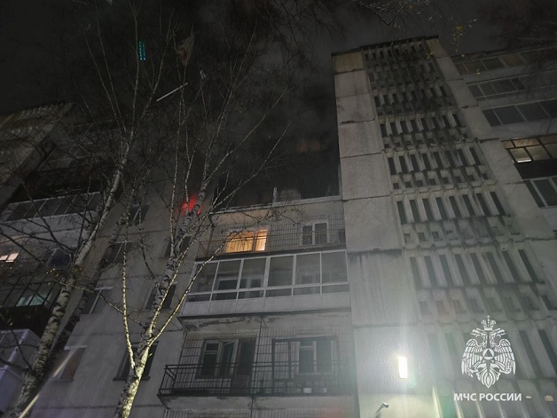 Пожар охватил 90 «квадратов» площади, его тушили 69 сотрудников МЧС России с помощью 19 единиц техники. От огня пострадали две квартиры, закоптились стены подъезда. Причину пожара устанавливает дознаватель МЧС.