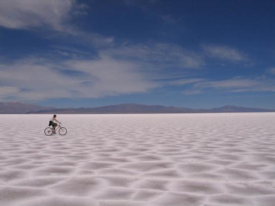 Салинас-Грандес в Аргентине - это соляная белоснежная пустыня, крупный солончак длиной 250 км, шириной 100 км. Когда идет дождь, солончак наполняется водой и превращается в гигантское зеркало. Большой популярностью у туристов Салинас-Грандес пока не пользуется, хотя здесь проходят железные и автомобильные дороги.