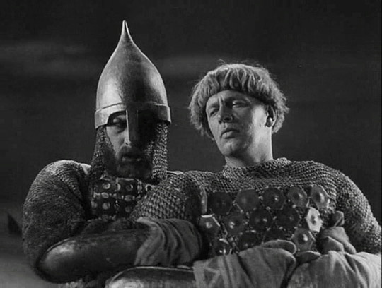 Недаром в любви к этому фильму признавалась, в числе многих, и несравненная Кира Муратова: скажем, эпизод, в котором к новгородской красавице Ольге одновременно сватаются два друга-богатыря, реализован в абсолютно муратовском гротескном ключе.