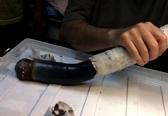 Прибыв на место и поняв, кто именно перед ними, они пришли в восторг. Оказалось, что это моллюск Kuphus polythalamia. Этот вид был известен учёным только по хранящимся в музее фрагментам, его анатомия оставалась загадкой.