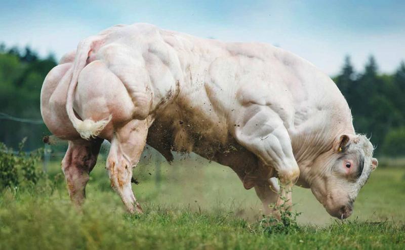 А вот голубым коровам не повезло. Это настоящие генно-модифицированные организмы. Их вывели для того, чтобы получать специальное, отборное мясо. Новорожденные телята весят около 40 килограммов.