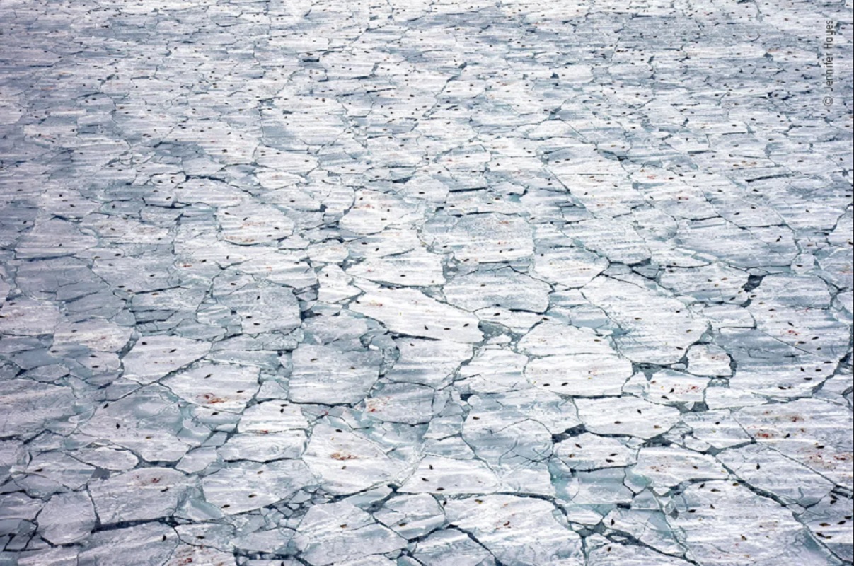 «Океаны». Треснувшая льдина, которую тюлени используют для родов. Фотограф Дженнифер Хейс, США.